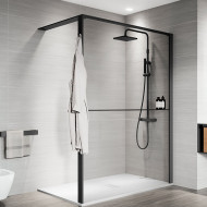 Novellini Kuadra HWS Душевое ограждение 137-140х200cм., с свободным входом, Dx, с полотенцедержателем, стекло прозрачное, цвет: черный матовый