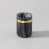 Изысканный стакан изготовлен из натурального мрамора. Каждое изделие вырезано вручную из отдельных блоков, что делает его оригинальным и неповторимым по рисунку. Изящная вставка из золотого металла добавляет роскоши.